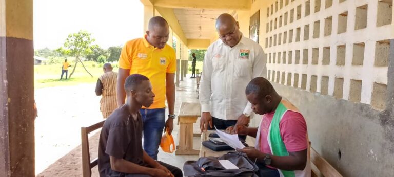 En présence d’autres responsables du parti, Dr Noufé Michel a inspecté les dispositifs mis en place pour faciliter l’accès à l’inscription, notamment dans ces zones rurales où les défis d’accessibilité peuvent freiner la participation.