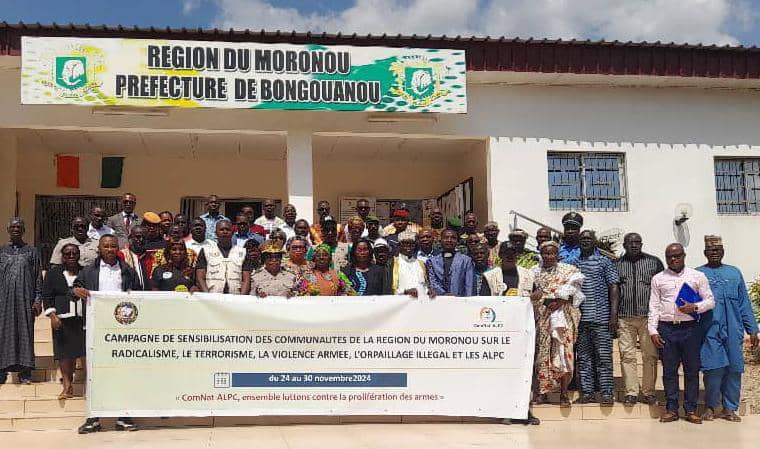 Bongouanou, 27 nov 2024 (AIP)- La Commission nationale de lutte contre la prolifération des armes légères et de petit calibre (ComNat-ALPC) a entrepris mardi 26 novembre 2024 une campagne de sensibilisation auprès des leaders communautaires du Moronou en vue de lutter contre la détention illégale des armes.