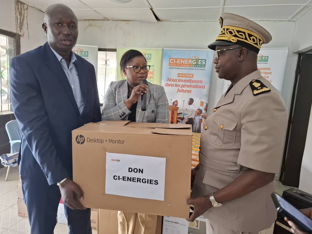 Soubré, 16 déc. 2024 (AIP) –La cheffe du service de responsabilité sociétale de CI-Énergies, Mme Magbê Touré, a remis du matériel informatique et didactique à plusieurs établissements scolaires, à la direction régionale de l’Éducation nationale et de l’Alphabétisation, ainsi qu’à des correspondants de presse et radios locales, lors d’une cérémonie organisée lundi 16 décembre 2024 à la préfecture de Soubré.