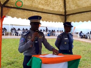 Le commandant de la 7ᵉ Légion de gendarmerie territoriale d’Abengourou, le colonel Béchié Judicaël, a salué l’héroïsme et l’esprit de sacrifice de ses anciens collaborateurs, qui risquaient fréquemment leur vie dans l’accomplissement de leur mission.