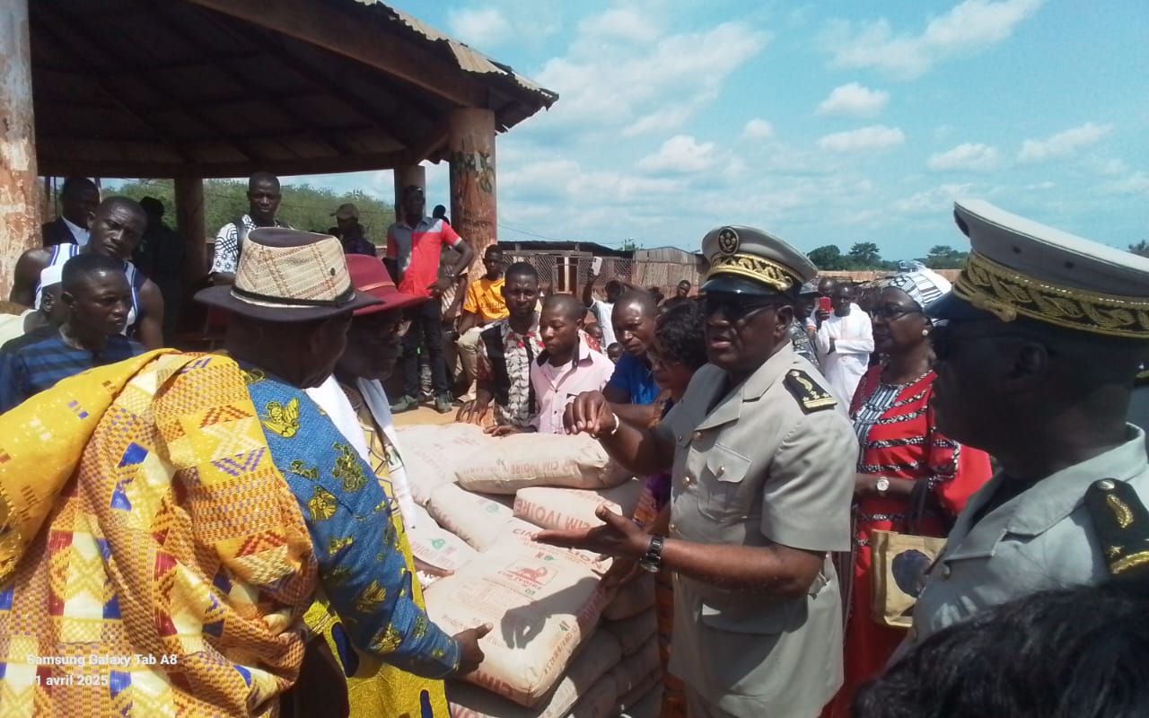 Vavoua, 20 avr 2025 (AIP) – Un total de Cinq tonnes de ciment, 200 feuilles de tôle ainsi que des vivres ont été offerts, vendredi 18 avril 2025, aux sinistrés de Danzerville dans le département de Vavoua par le ministère de la Solidarité, de la Cohésion sociale et de la Lutte contre la pauvreté.