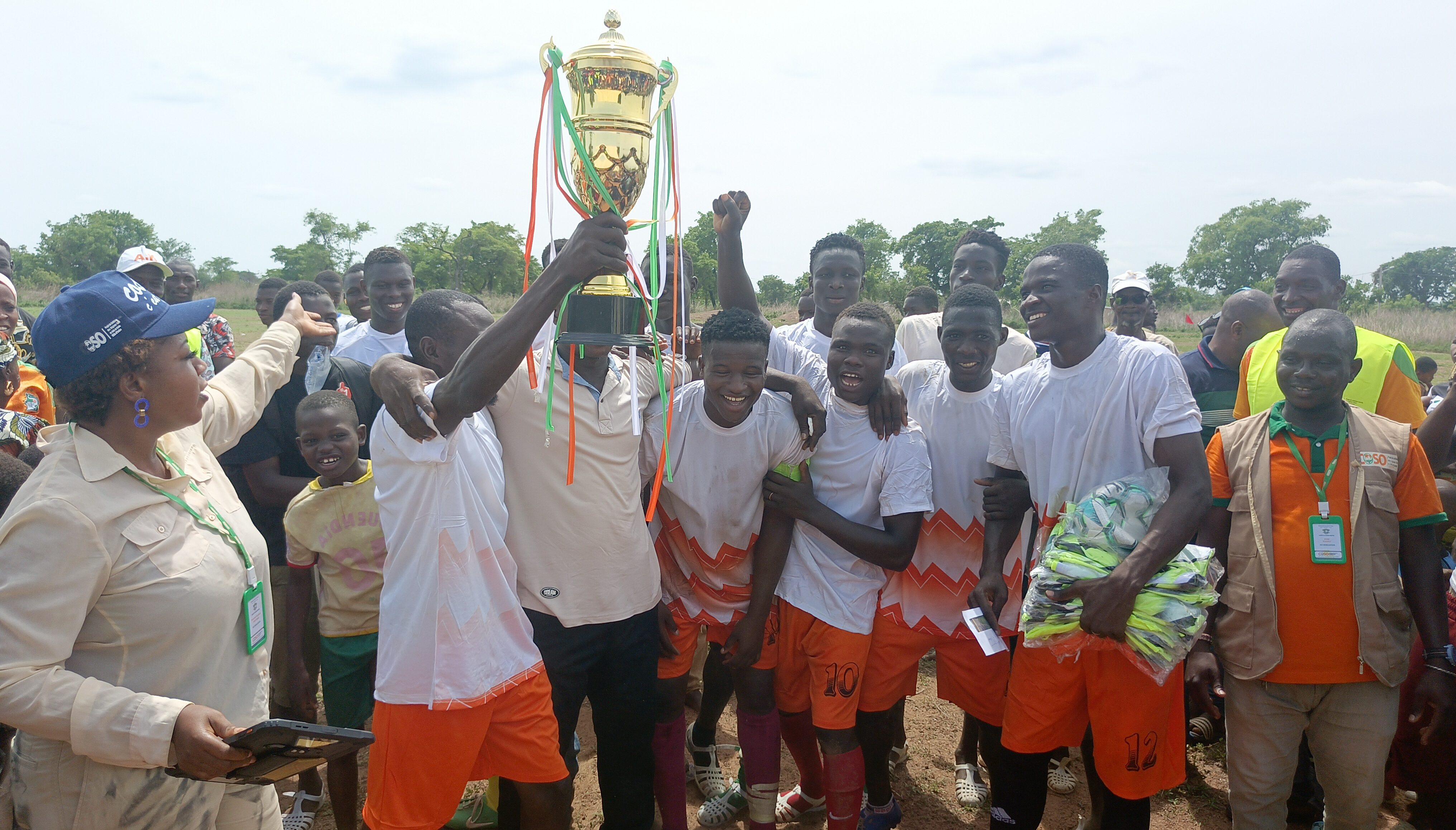 Ce tournoi de football, débuté le mercredi 07 mai sous le thème, “Jeunesse, porte flambeau de la cohésion et de la solidarité communautaire “, est une initiative du projet de cohésion sociale des régions nord du Golf de Guinée (COSO), avec pour objectif le renforcement des liens de fraternité et de solidarité. La finale a opposé l’équipe de Mapina à celle de Sahandala. Au terme du temps réglementaire, c’est l’équipe de Sahandala qui l’a emporté sur le score de deux buts à zéro.