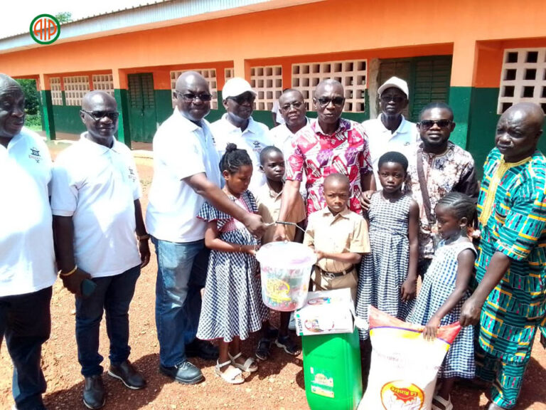 Le don comprend 48 sacs de riz de 75 litres, des cartons de pâtes alimentaires et de tomates, destinés au groupe scolaire Sankadiokro 1 et 2, ainsi qu’à l’École primaire publique (EPP) GVC de Sankadiokro.
