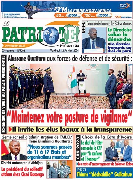 Abidjan, 12 jan 2024 (AIP) – Les journaux parus ce vendredi 12 janvier 2024 mettent en lumière la présentation des vœux au président de la République, Alassane Ouattara, l’ouverture imminente de la Coupe d’Afrique des nations (CAN) et divers autres sujets.