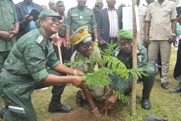 Pour Bouaflé, plusieurs espèces ont été mises en terre, notamment l’acacia peltophorum, le terminalia mantaly, l’ylang-ylang et le gmelina arborea, symboles d’un renouveau écologique.