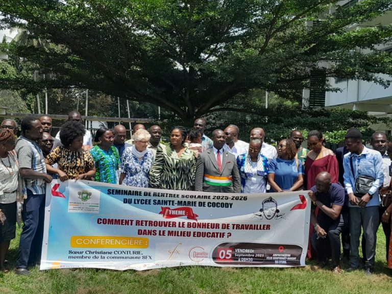 Abidjan, 05 sept 2025 (AIP) – Le proviseur du lycée Sainte-Marie de Cocody, Coulibaly Georgette epse Ouattara, a invité, vendredi 05 septembre 2025, la communauté éducative et les parents d’élèves à s’unir pour mieux encadrer les élèves, à l’occasion du séminaire de formation des personnels éducatifs organisé autour du thème « Comment retrouver le bonheur de travailler dans le milieu éducatif ».