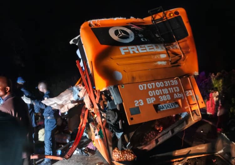 Bangolo, oct 2025 (AIP) – Six personnes ont tragiquement perdu la vie et 33 autres ont été blessées, dont sept grièvement, à la suite d’une violente collision survenue mardi 30 septembre 2025, aux environs de 22 h, à proximité du village de Baoubly, situé à cinq kilomètres de Duékoué, sur l’axe menant à Bangolo, a-t-on appris de sources sécuritaires.