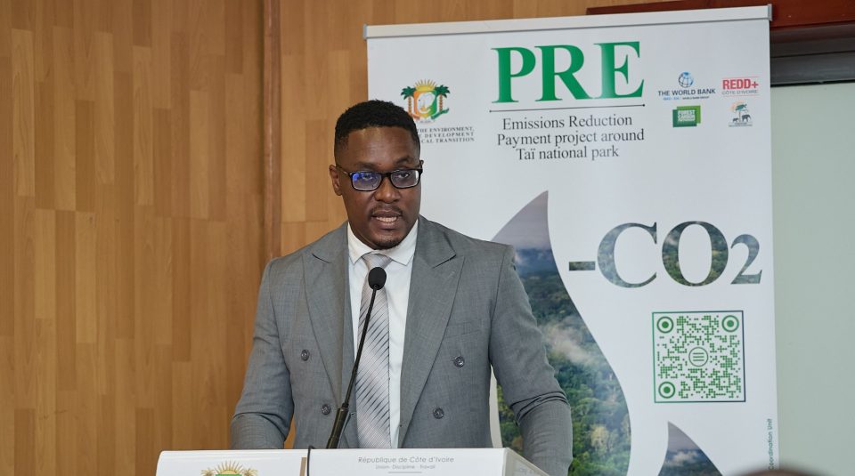 EK: Le projet de Paiement des réductions d’émissions autour du Parc National de Taï communément appelé PRE, est mis en œuvre par le ministère de l’Environnement, du Développement durable et de la Transition écologique, avec le soutien financier de la Banque mondiale.