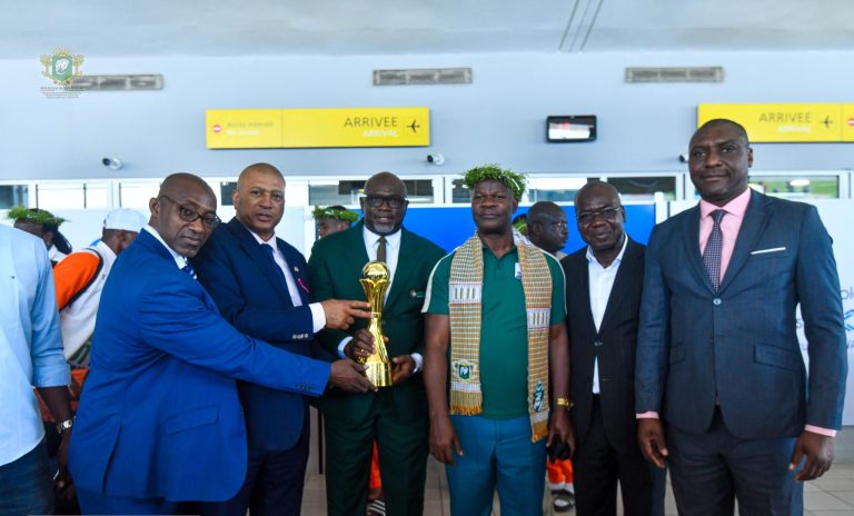 À leur arrivée à l’aéroport Félix Houphouët-Boigny d’Abidjan, la délégation conduite par le président de la FIMAA, Bleu Charlemagne, a été accueillie par le Comité national de soutien aux Éléphants (CNSE), en présence du conseiller technique du ministre, Diallo Adamah Kalil, du DG de l’OISSU, Adama Doumbia et bien d’autres personnalités du monde du sport.