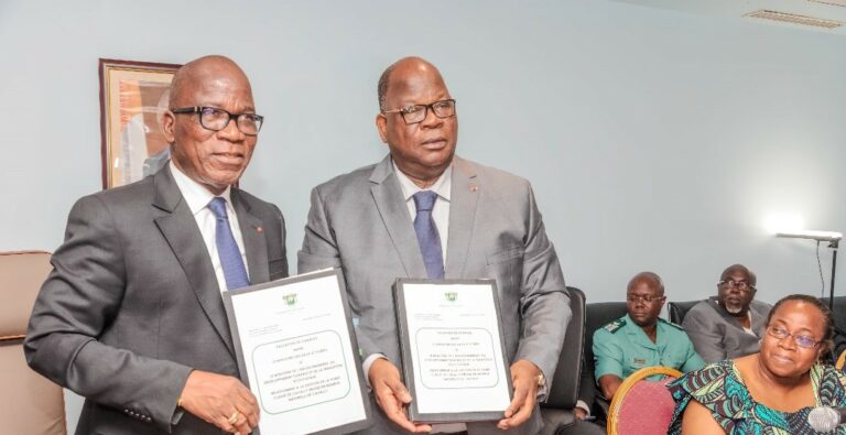 Pour matérialiser ce transfert, le ministre des Eaux et Forêts, Laurent Tchagba, a remis à son collègue de l’Environnement, du Développement et de la Transition Ecologique, un dossier contenant l’arrêté initial de classement de la forêt du Cavally.