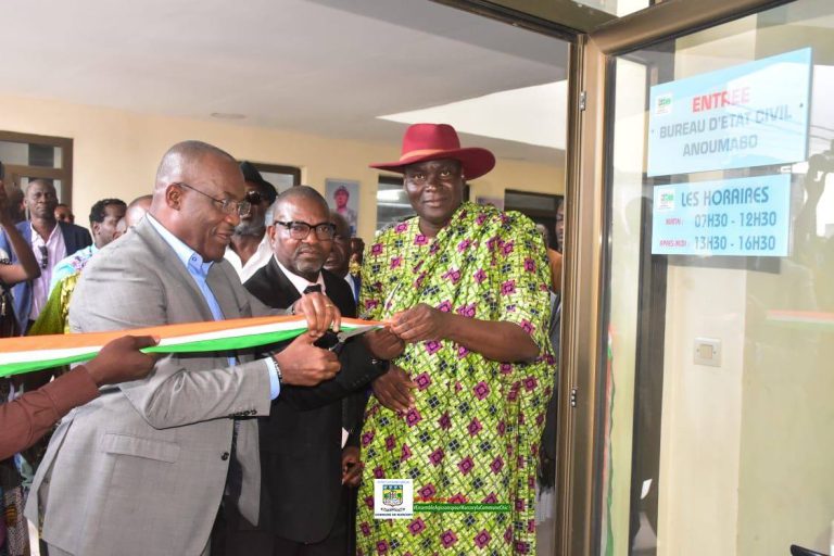 Le nouveau bureau d’état civil d’Anoumabo offre plusieurs services essentiels, notamment la légalisation et la certification des naissances, la déclaration des décès, la délivrance de certificats (vie et entretien, non-remariage, non-séparation de corps), la demande et le retrait de copies d’actes (naissance, mariage, décès), ainsi que la vente de timbres.