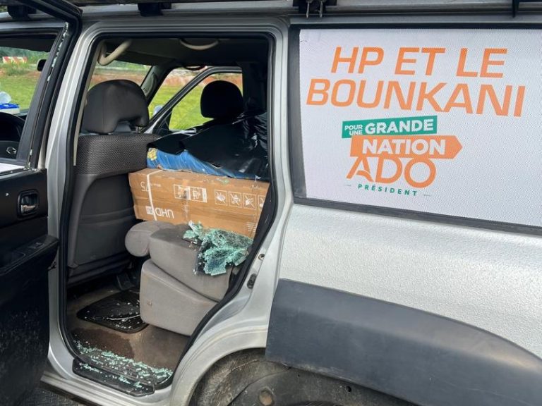 Bouna, 12 oct 2025 (AIP)–Le cortège du président du conseil régional du Bounkani, Dr Hien Philippe, a été pris à partie, samedi 11 octobre 2025, par des jeunes armés de pierres sur la nationale A1, dans les localités d’Akoupé et de Bécouéfin, alors qu’il se rendait à Bouna pour la campagne présidentielle, a appris l’AIP.