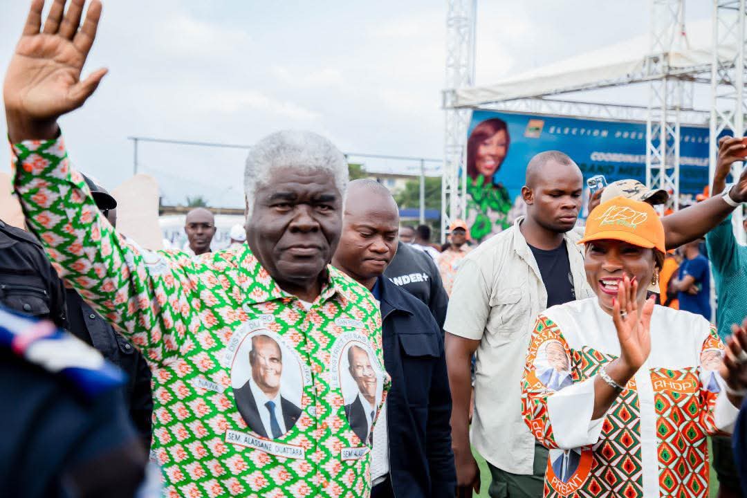 Abobo, 15 oct 2025 (AIP) – Le directeur national de campagne du Rassemblement des houphouëtistes pour la démocratie et la paix (RHDP), Beugré Mambé, et la directrice centrale, Kandia Camara, également directrice régionale en charge de la campagne dans les localités d’Abobo et d’Anyama, ont exhorté, dimanche 12 octobre 2025, les populations à voter massivement pour le candidat du parti, Alassane Ouattara, lors d’un meeting géant d’ouverture de campagne tenu au complexe sportif d’Abobo.