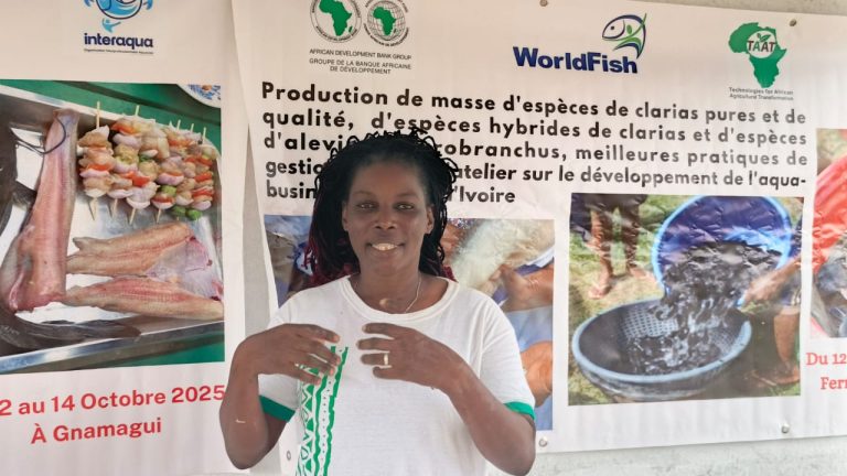 Soubré, 14 oct 2025 (AIP) – Une formation de trois jours sur la production d’alevins de silure, initiée par WorldFish TAAT en partenariat avec l’Interprofession de la filière aquacole (INTERAQUA), se tient du 13 au 15 octobre 2025 à la ferme Saba, une écloserie située à Soubré, dans la région de la Nawa.