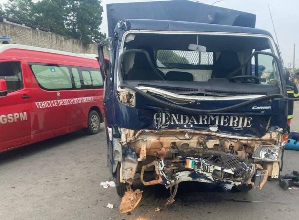 Songon, 16 oct 2025 (AIP)- Un grave accident de la circulation s’est produit dans la matinée du mercredi 15 octobre 2025, aux environs de 6 h, au carrefour du grand séminaire à Anyama, impliquant un véhicule de la gendarmerie nationale et un camion-remorque, a appris l’AIP de source sécuritaire.