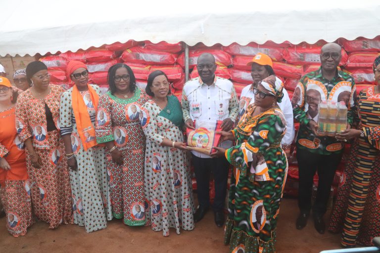Bondoukou, 17 oct 2025 (AIP) – La Première dame, Dominique Ouattara, a offert, jeudi 16 octobre 2025, à la mairie de Bondoukou, du matériel et des dons en espèces d’une valeur totale estimée à plus de 500 millions FCFA, destinés, aux femmes et aux jeunes de la région du Gontougo, en présence de plusieurs cadres du Rassemblement des houphouëtistes pour la démocratie et la paix (RHDP).