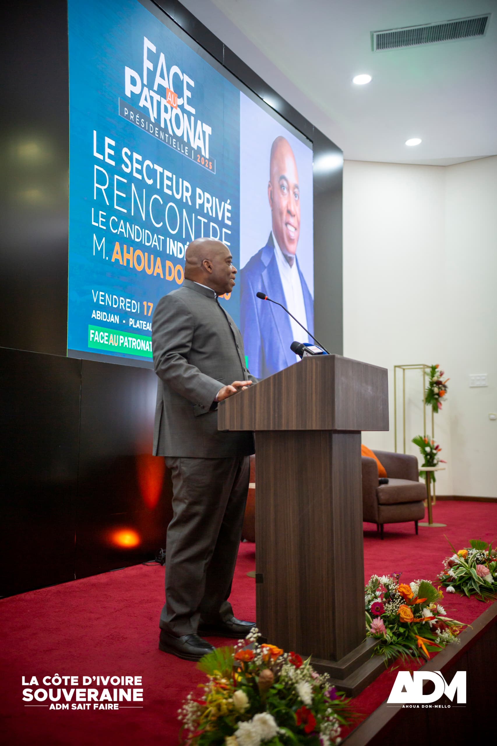 Abidjan, 20 oct 2025 (AIP) – Le candidat indépendant à la présidentielle du 25 octobre 2025, Ahoua Don Mello, a exposé, vendredi 17 octobre, devant les chefs d’entreprises réunis à la Maison de l’entreprise au Plateau, son programme de redressement économique axé sur la transformation industrielle et la souveraineté économique.