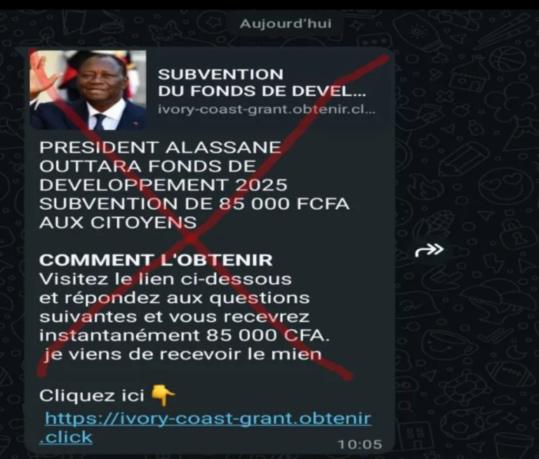 Abidjan, 22 oct 2025 (AIP) – Faux, il n’existe aucun fonds de développement 2025 octroyant une subvention de 85.000 Fcfa aux citoyens