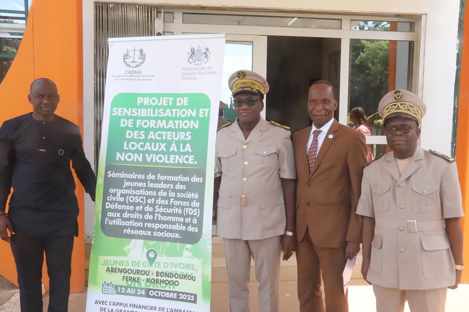 Bondoukou, 24 oct 2025 (AIP) – La Coordination africaine des droits de l’homme pour les armées (CADHA) organise, du jeudi 23 au vendredi 24 octobre 2025 à la préfecture de Bondoukou, un atelier de sensibilisation et de formation des acteurs locaux à la non-violence et à l’utilisation responsable des réseaux sociaux.