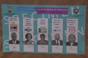 Ce fut également le cas lors de l’élection présidentielle du 31 octobre 2020. Les représentants des candidats Alassane Ouattara et Bertin Konan Kouadio avaient réceptionné le 9 octobre 2020 ces documents, les candidats Henri Konan Bédié et Pascal Affi N’Guessan, également figurant parmi les quatre candidats retenus pour l’élection par le Conseil constitutionnel, ayant boycotté le scrutin.