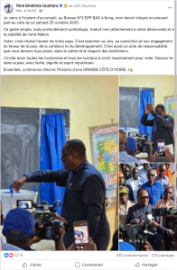 Alors que AES MEDIAS TV a fait cette publication ce 25 octobre à 11h32, le ministre Téné Birahima Ouattara, a assuré peu avant, à 10h02 sur Facebook, qu’il a voté à Kong, dans le Nord-Est du pays. « Je viens à l’instant d’accomplir, au bureau N°2 EPP BAD à Kong, mon devoir citoyen en prenant part au vote de ce samedi 25 octobre 2025 », a écrit le ministre.