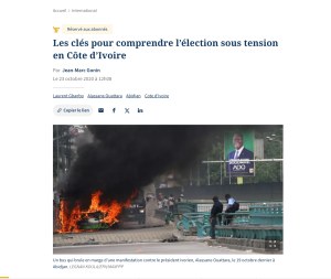 En procédant à une recherche inversée d’image avec le moteur de recherche Google, nous avons pu constater que la photo accompagnant la publication ne date pas d’octobre 2025. Selon un article du journal français Le Figaro, publié le 19 octobre 2020, cette image montre l’incendie d’un bus survenu lors d’une manifestation contre la candidature du président Alassane Ouattara à un troisième mandat.