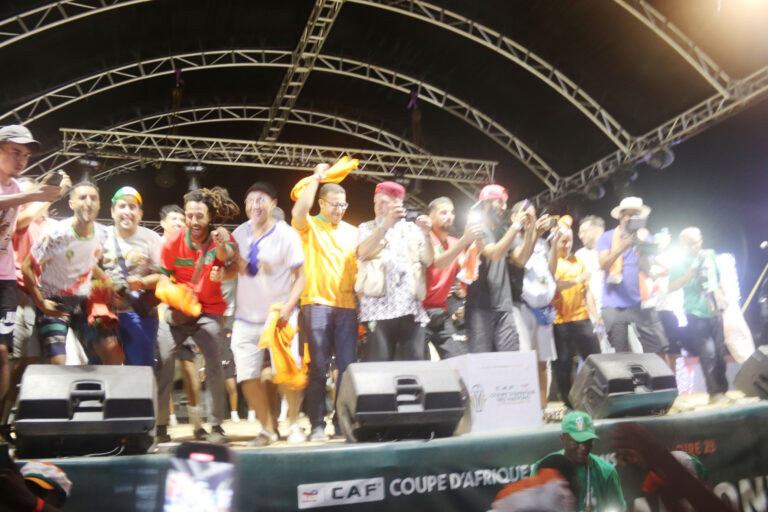 Dans l’ambiance de la célébration de la victoire des ivoiriens, l’animateur a invité tous les marocains sur le podium de la FANZONE pour être salués par le public et remerciés pour la victoire de leur sélection nationale sur la Zambie (1 à 0), le 24 janvier à San Pedro, qui a permis à la Côte d’Ivoire d’être classée meilleure troisième et d’obtenir son ticket de huitième de finale.