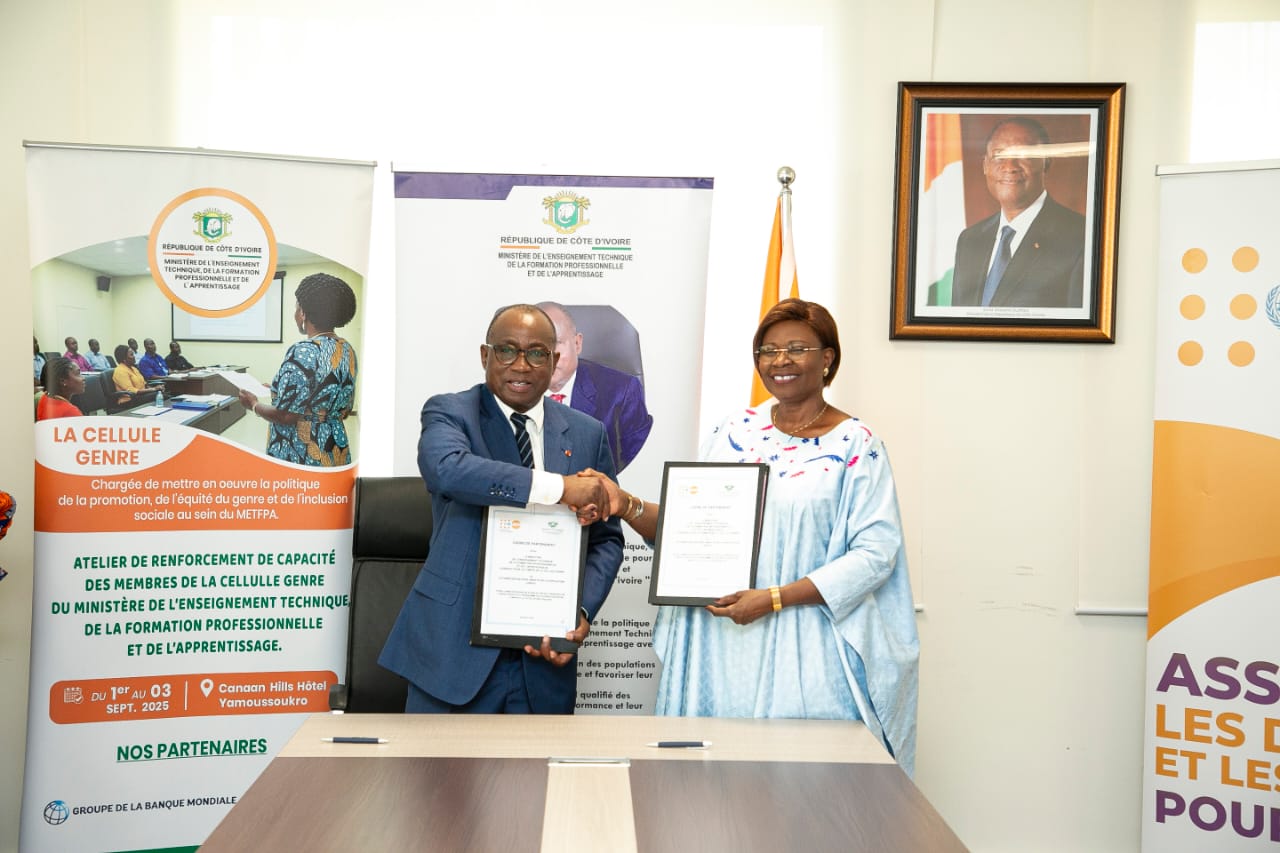 Abidjan, 11 nov 2025 (AIP) –Le ministère de l’Enseignement technique, de la Formation professionnelle et de l’Apprentissage et l’UNFPA ont signé, lundi 10 novembre 2025, un accord faisant de la santé sexuelle et reproductive un axe à part entière de la formation professionnelle en Côte d’Ivoire.