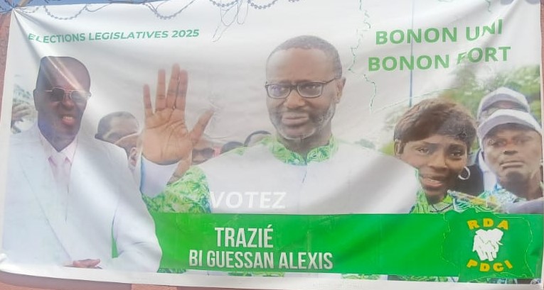 Quatre candidats sont en lice pour les législatives dans la circonscription de Bonon–Zaguieta : Trazié Bi Guessan Alexis (PDCI-RDA), Yacouba Koné (RHDP), Zoro Bi Ballo Franck (indépendant) et Kouamé Bi Bli Robert (MGC).