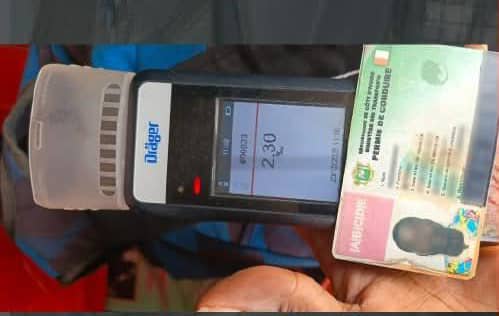 Soumis à un test d’alcoolémie, il affichait un taux de 2,30 g/l de sang, soit près du triple de la norme légale en Côte d’Ivoire (0,80 g/l), précise la note. Conformément aux procédures, six points ont été immédiatement retirés de son permis de conduire, transmis à la Commission spéciale de suspension et de retrait.