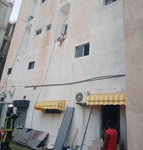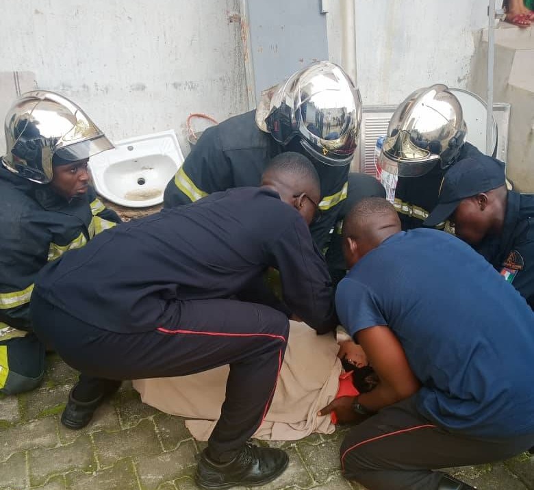 Alors que la jeune dame se jetait dans le vide depuis le premier étage de l’immeuble, l’un des sapeurs-pompiers est parvenu à la réceptionner, évitant ainsi un drame. La victime a aussitôt été prise en charge par le Véhicule de secours d’urgence (VSU 82), avant d’être évacuée vers le Centre hospitalier universitaire (CHU) d’Angré pour des soins appropriés.