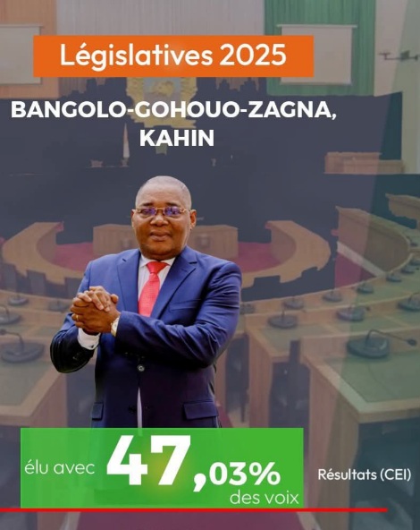 Abidjan, 30 dec 2025 (AIP)- A l’issue des élections législatives du 27 décembre 2025, Célestin Serey Doh, le coordonnateur régional du Guémon du Rassemblement des houphouétistes pour la démocratie et la paix (RHDP) est arrivé largement en tête des résultats provisoires à Bangolo, avec 6394 voix, soit 47,03% pour la circonscription de Bangolo-Gohouo-Zagna-Kahin, devançant Tailly Thierry Hermane qui a obtenu 3315 voix, soit 24,38%, selon les proclamations faites par la Commission électorale indépendante (CEI) locale.