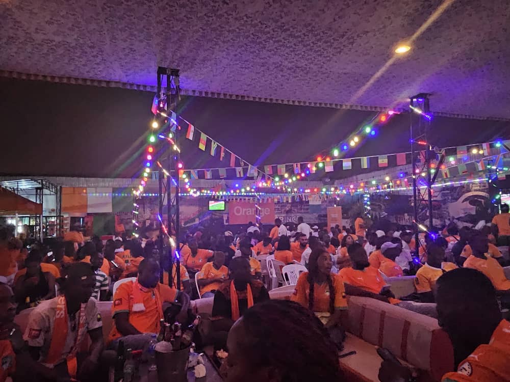 De nombreux supporters se sont rassemblés le mardi 6 janvier 2026 au maquis “La Pelouse” pour suivre le match opposant les Éléphants aux Etalons du Burkina Faso.