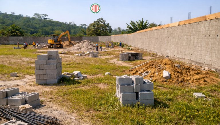 À ce stade, les opérations préliminaires, notamment la préparation et l’organisation du chantier, ont déjà été réalisées. Les prochaines étapes concernent l’implantation des différents bâtiments, le dégagement des zones existantes et les travaux de terrassement et de nivellement du terrain.
