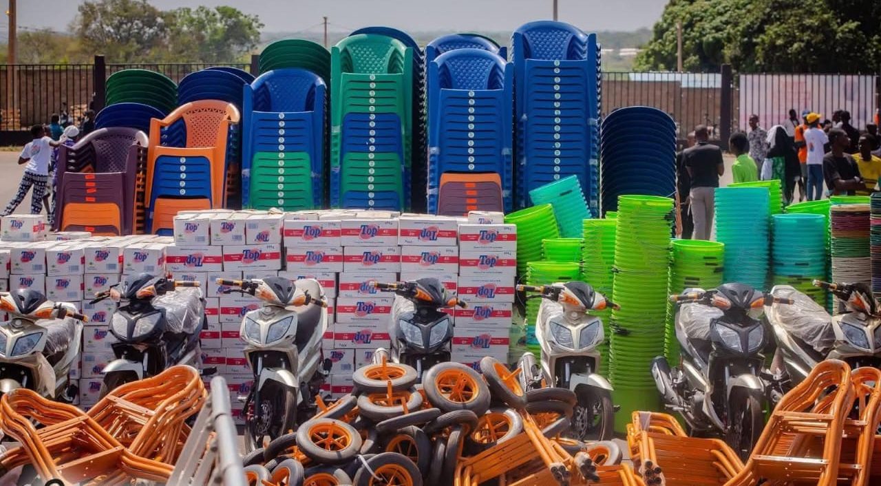 Au-delà des vivres, le vice-président a également offert divers équipements et matériels destinés à améliorer les conditions de vie des bénéficiaires, notamment des cartons de savons, des chaises, des seaux de bain, des motos et des brouettes.