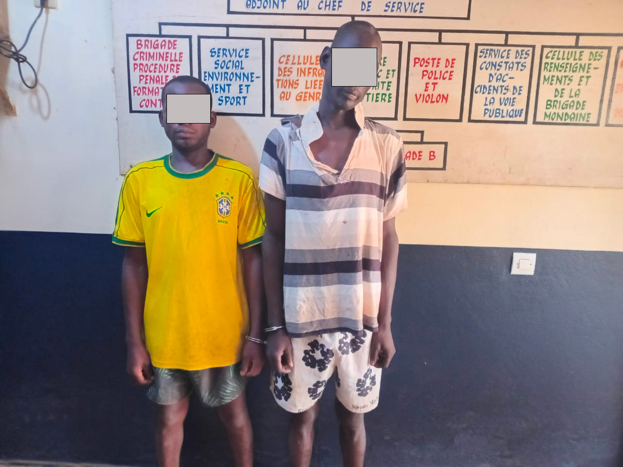 Les nommés K.K., né en 1998 à Fronan et sans emploi, et B.D., alias H., né en 1982 à Séguéla, également sans activité, ont été arrêtés aux environs de 02 h 30.