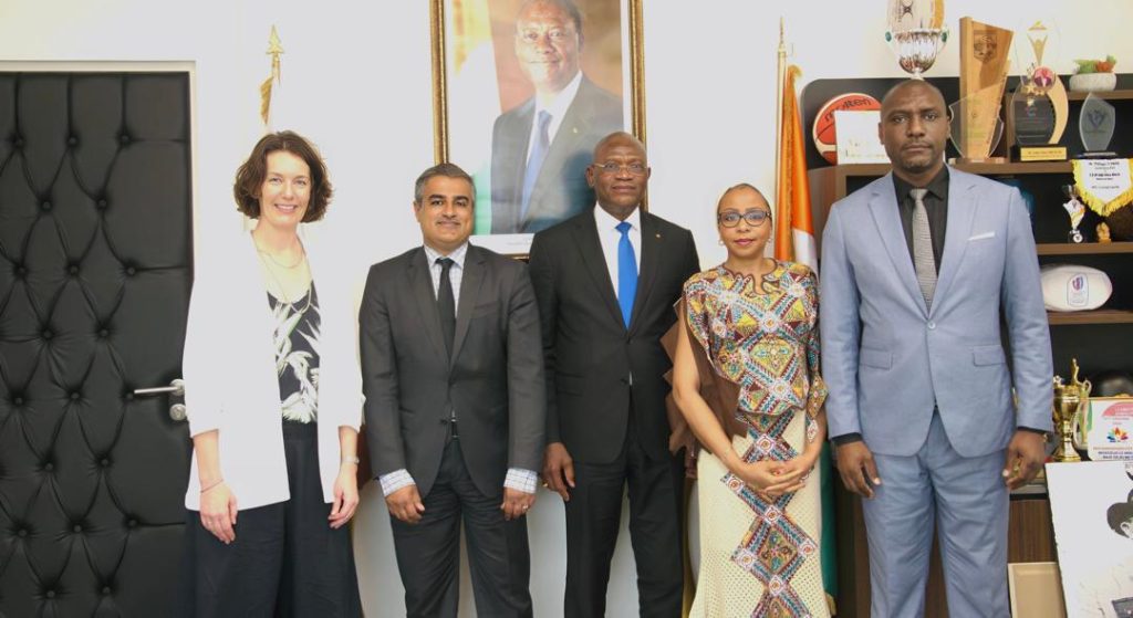 Abidjan, 20 fév 2026 (AIP) – Le ministre des Sports, Silas Metch Adjé, a reçu jeudi 19 février 2026, à son cabinet sis à Abidjan-Plateau, le chargé d’affaires de l’ambassade des États-Unis en Côte d’Ivoire, Junaid Munir, pour échanger sur les conditions de voyage des supporters ivoiriens pour la coupe du monde qui se déroulera sur le continent américain en juin.