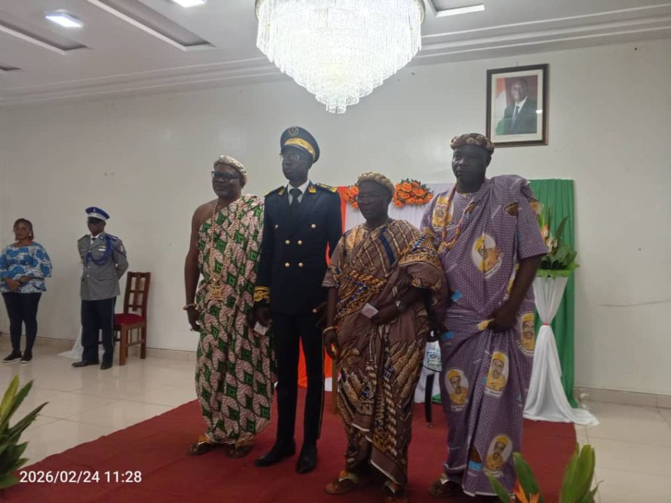Adiaké, 26 fév 2026( AIP)-Les forces vives d’Adiaké ont exprimé leur engagement à accompagner le préfet du département, Koffi Yao Kan Claude, dans ses missions régaliennes,mardi 24 février 2026, lors de la cérémonie de présentation de vœux de nouvel an tenue dans la salle des mariages de la mairie d’Adiaké.