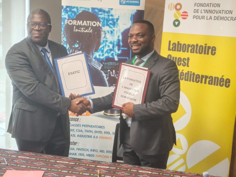 Abidjan, 26 fév 2026 (AIP)- L’École supérieure africaine des TIC (ESATIC) et la Fondation de l’innovation pour la démocratie ont procédé, jeudi 26 février 2026 à Abidjan Plateau, à la signature d’une convention de partenariat en vue du lancement du projet digital « Algo-Démo », une application dédiée à la promotion de la démocratie et à la participation citoyenne.