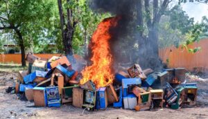 Abidjan, 16 fev 2024 (AIP) – Plusieurs machines à sous illicites saisies dans le département de Bouaflé ont été incinérées dans la cour de la préfecture, le jeudi 15 février 2024.