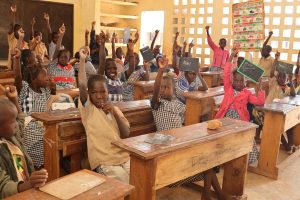 Des élèves assistent à un cours dans une salle de classe à l’école primaire publique de Dimbasso, dans le nord de la Côte d’Ivoire. © CERFAM