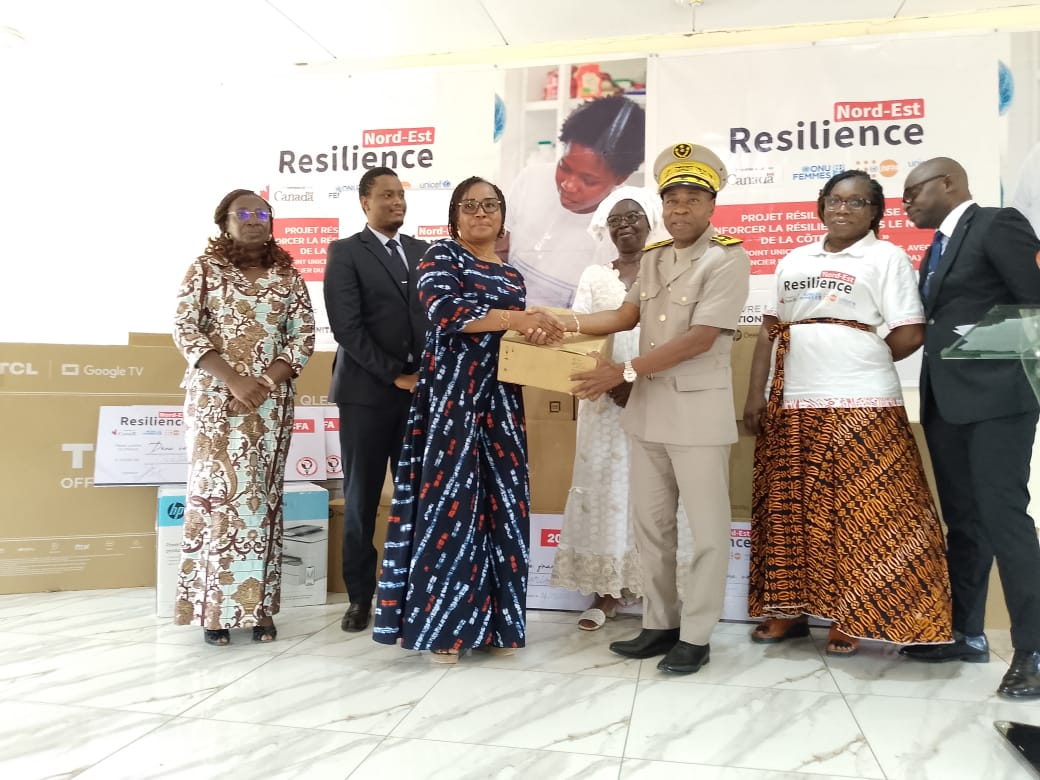 Bouna, 05 mars 2026 (AIP)–L’Institut de formation et d’éducation féminine (IFEF) de Bouna ainsi que deux organisations féminines locales ont reçu, mercredi 04 mars 2026, un important lot d’équipements destinés à renforcer leurs capacités d’action, dans le cadre du projet « Renforcer la résilience dans le Nord de la Côte d’Ivoire » porté par ONU Femmes en collaboration avec l’UNICEF et l’UNFPA, avec le soutien financier d’Affaires mondiales Canada.