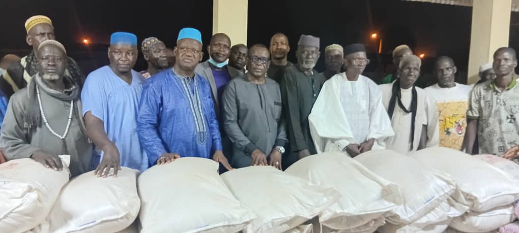 La délégation conduite par le premier vice-président, Coulibaly Salimou, a remis aux fidèles musulmans 7,5 tonnes de riz, soit 150 sacs de 50 kilogrammes, 30 cartons de sucre et une somme de 1,4 million de francs CFA.