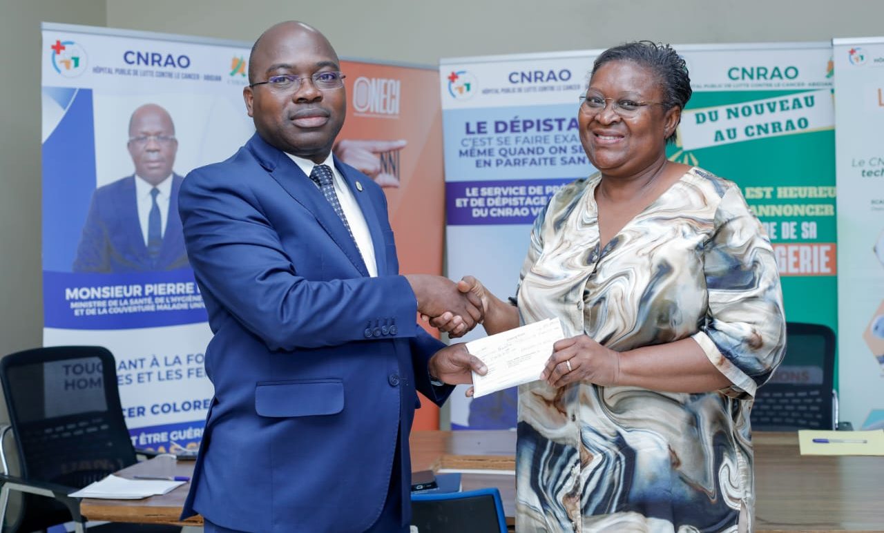 Abidjan, 21 avr 2026 (AIP)- L’Association des femmes de l’Office national de l’état civil et de l’identification (AFEM-ONECI) a procédé, mardi 21 avril 2026, à la remise officielle d’un chèque de cinq millions de francs CFA au Centre national d’oncologie médicale et de radiothérapie Alassane Ouattara (CNRAO), pour soutenir la lutte contre le cancer.