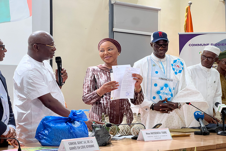 Abidjan, 24 avr 2026 (AIP) – Une délégation officielle de la ville de Kankan, en Guinée, a remis, jeudi 23 avril 2926, à Abidjan-Plateau, l’invitation d’honneur à la ministre de la Femme, de la Famille et de l’Enfant et maire d’Odienné, Nassénéba Touré, pour la participation de sa commune à la Mamaya 2026, lors d’une cérémonie à la Chambre de commerce et d’industrie.