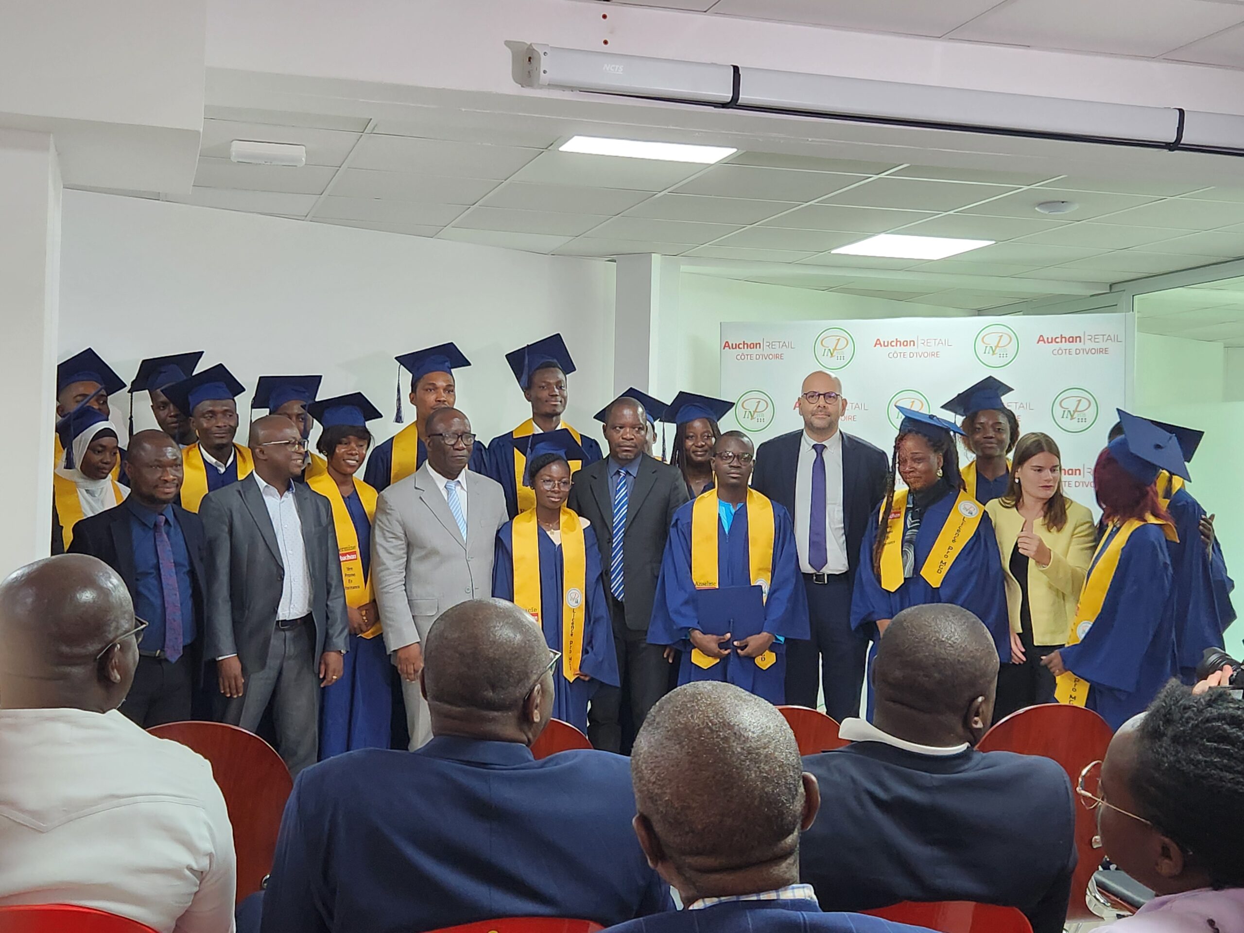 En complément d’un enseignement de qualité dispensé par l’INP-HB et l’Ecole de commerce et de gestion (ECG), Auchan Retail Côte d’Ivoire a, entre autres, accompagné financièrement les étudiants lors des études et a mobilisé ses cadres pour animer des sessions de formation, ainsi que ses collaborateurs pour tutorer en conditions professionnelles les étudiants.