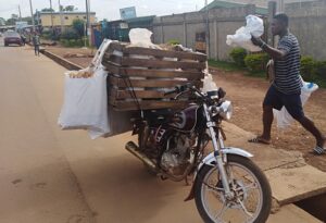 En effet, là où les livreurs de la ville partent avec 100 pains, ceux qui ont choisi l’option des villages ne peuvent se payer le luxe de faire trois ou quatre voyages. Ils empilent donc 250 voire 300 pains en un seul voyage, poursuit Soh, le syndicaliste. En plus des deux sacs sur l’épaule, un autre est positionné sur le guidon de la moto. Une grande partie des pains est située à l’arrière de l’engin, en général, dans une caisse en bois et recouverte de plastique noir. S’ils prennent de la poussière, la recette est perdue. Or, les pains transportés à l’arrière de l’engin et qui sont plus importants en nombre, sont plus exposés à la poussière et doivent être emballés avec beaucoup de soins.